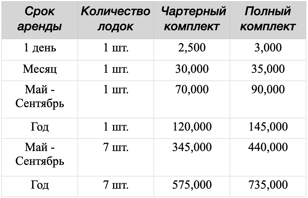 Можно купить по отдельности 1900€/шт. ~ 190,000 руб. Обе лодки сразу 3600€/2шт. ~ 360,000 руб
