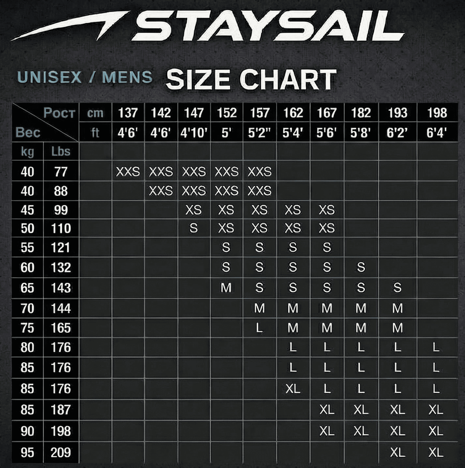 Мысль зародилась еще год назад, и все это время проводилась работа: поиск предприятия по пошиву, разработка образцов, дизайна, подбор материала, и вся эта работа дала результат! Первая партия гидрокостюмов Staysail уже в продаже и готова радовать своих клиентов