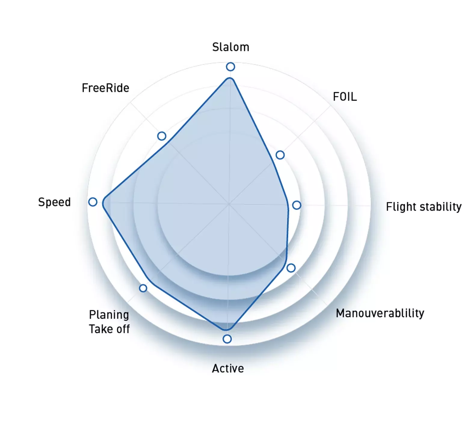 Значительная экономия веса как в реальных условиях, так и на воде позволяет парусу практически незаметен в руках, оставляя райдеру возможность сосредоточиться исключительно на настройке фойла и доски. Парус изготовлен из цельного монокока, который бесшовно соединяет переднюю кромку и корпус паруса, образуя единое целое.